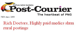 5. To the connotation that doctors are highly paid is ludicrous. In comparison to other countries, Papua New Guinea Doctors are lowly paid. For example, in Israel, its doctors are highly paid here. For example, a resident medical doctor is paid $US10, 000/month (ten thousand American dollars a month). Israel has twenty thousand (20,000) doctors working in Israel that has a population 8 million people. Therefore, the ratio of doctor to population in Israel is one doctor to 400 people. A resident doctor in PNG gets close to two thousand kina a month (PGK2, 000/month) after tax. It takes about 27-32 years to train a specialist medical officer/doctor however; this does not even get a good package. Sadly, the specialist doctor is paid 30% of what is paid to the first year Resident Medical Doctor in Israel in a month. Do you call that a high pay?? The doctor to population ratio in PNG is one doctor to 17,000 people. The government of PNG and people must salute the doctors for serving the government of PNG in difficult circumstances with dignity and distinction.